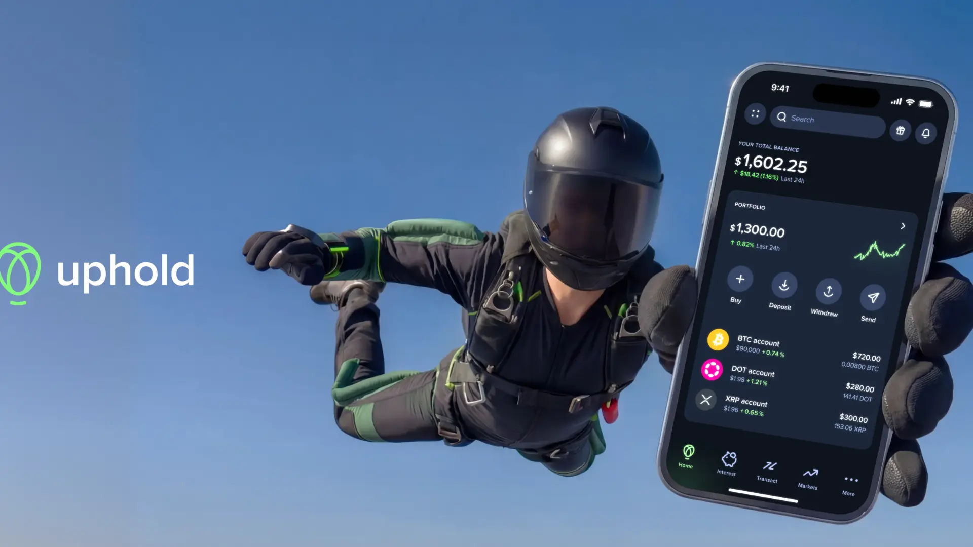 Recent product launches include the first retail tokenized US dollar deposit offering FDIC-insured, fully reserved dollar accounts on blockchain, a debit card for spending crypto or fiat balances, and KYC-compliant DeFi access to protocols like Aave and Compound at rates 4% below banks. Partnerships with Brave Software for BAT rewards, Ledger for hardware wallets, and acquisitions including JNK Securities and Cortex MCP strengthen the platform's infrastructure. Competing against Coinbase's US-centric model, Robinhood's limited international fiat support, and Revolut's narrower commodity coverage, Uphold needed a creative partner producing unlimited ad variants across every format to sustain testing velocity for a multi-product platform serving 184 countries.