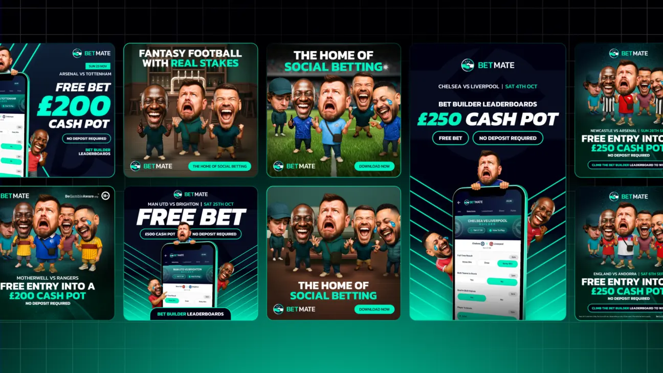 To support Betmate’s social-first betting platform, we developed a scalable series of AI-backed bobblehead characters designed to capture the emotion, rivalry and humour of matchday. Built using real reference imagery and refined through a bespoke AI and Photoshop workflow, the characters became a flexible creative system. What started as a playful character concept evolved into a high-volume, performance-ready campaign asset rooted in personality and precision.