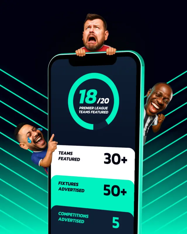 What started as a set of plainly clothed characters quickly evolved into a scalable creative system. As the campaign expanded, the bobbleheads became a recurring feature across fixture-based ads, with characters dressed in the relevant team shirts for each promoted match. By integrating specific kits, the creative became instantly contextual and recognisable, allowing the bobbles to seamlessly adapt to different fixtures while maintaining a consistent visual identity. This approach transformed them from standalone illustrations into a flexible campaign asset that could be adapted week by week to the football calendar.