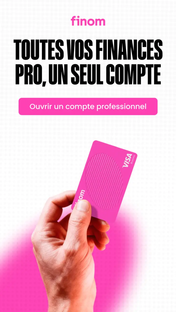 The ad creative embodies the Finom message visually and emotionally. A single hand holds a sleek pink Finom Visa card, contrasted against bold typography that declares the benefit outright. In English, this reads "All your business finances, one single account" followed by a CTA of "Open a professional account".No jargon, no complexity, just confidence. The visuals alternate between light and dark backgrounds to bring versatility across placements, ensuring consistent impact, whether this be seen on mobile or desktop.We created multiple variants of these in portrait and square, with the hand and card positioning, as well as the colour scheme, changing each time, to allow for in-depth testing.