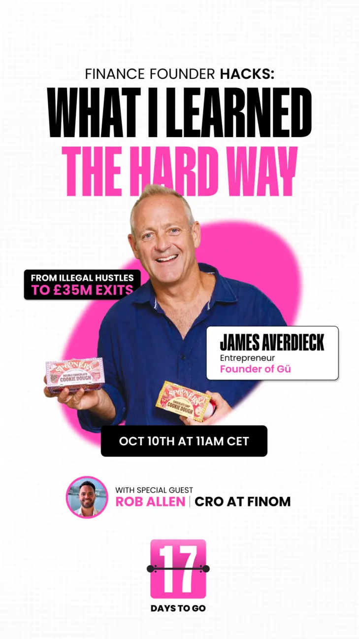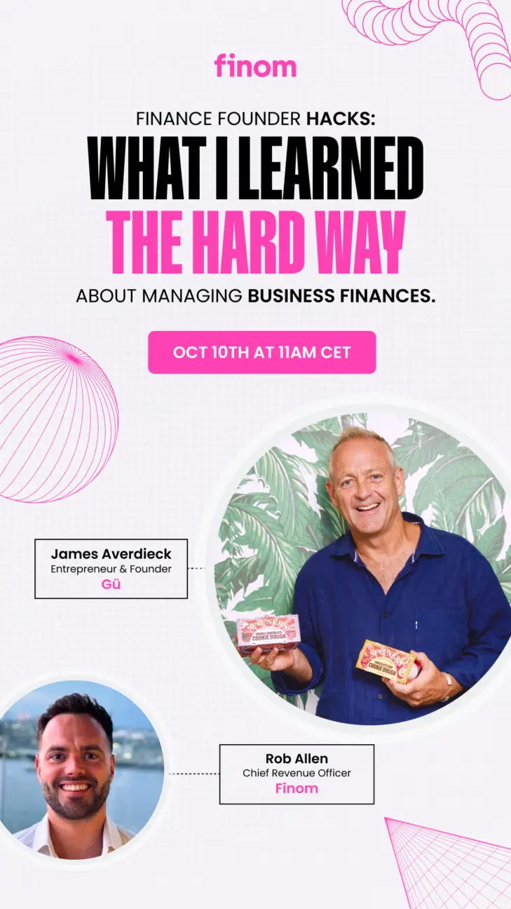 For Finom, we developed a campaign to promote the live Founder Finance Hacks webinar - a straight talking session featuring entrepreneur James Averdieck, founder of Gü, in conversation with Finom’s CRO Rob Allen. The creative leaned into the energy of startup storytelling; high-contrast pink accents, confident typography, and founder portraits gave the content both authority and approachability. By blending education with entertainment, the visuals positioned Finom as the brand that understands founders on their own wavelength. The result was a campaign that felt smart, current, and founder-first; driving engagement across both organic and paid channels.