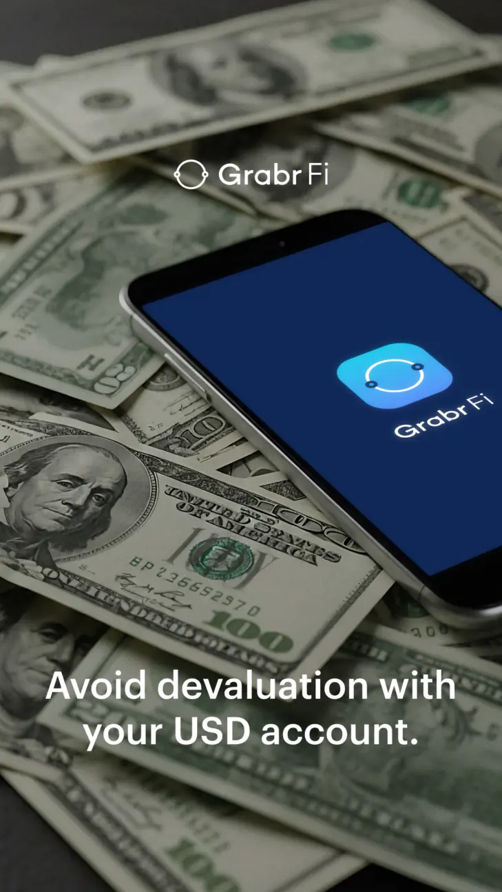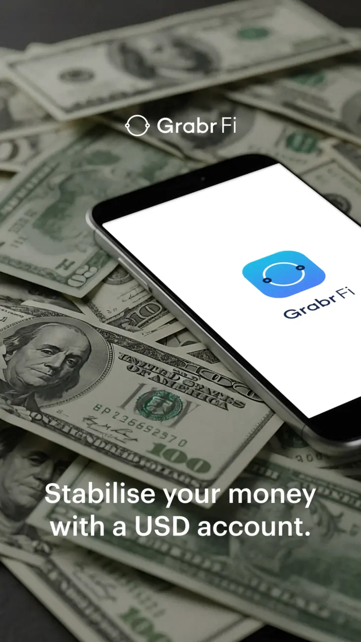 We created a set of statics for GrabrFi focused on financial control and stability in economies facing constant currency shifts. The creative used a simple but powerful visual metaphor: dollars as a foundation of security. The imagery of stacked cash and a clean phone interface balanced aspiration with practicality, helping viewers associate GrabrFi’s USD accounts with strength and protection. The tone was calm and authoritative, avoiding hype while highlighting the product’s real financial utility. The message: GrabrFi helps users protect their earnings and preserve value in a volatile market.