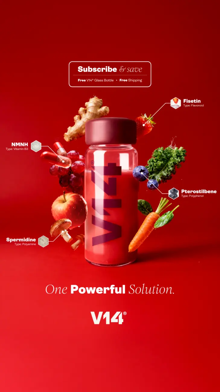 For V14, we developed a bold visual concept designed to bring the science behind their longevity formula to life. The graphics centre around the product while highlighting key ingredients through vibrant, dynamic compositions of fruits, botanicals and nutrient compounds.